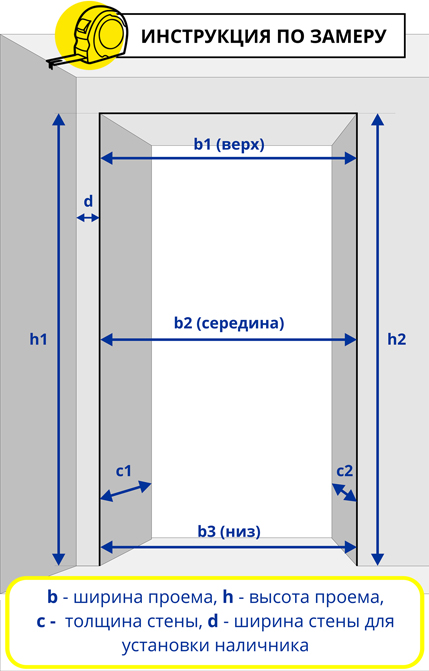 Перед покупкой дверей необходимо точно измерить проем. Измерьте ширину и высоту, а также обратите внимание на глубину проема, так как это будет влиять на выбор коробки и петель.