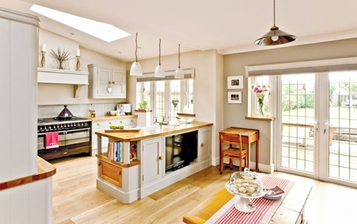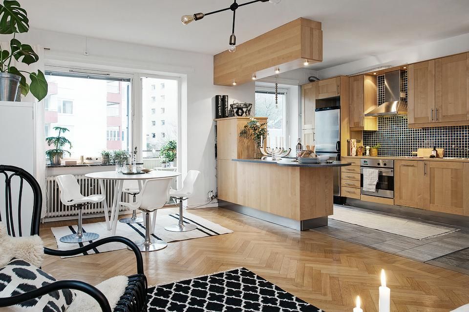 — Большие кухни: Можно предусмотреть остров или барную стойку, чтобы создать дополнительное пространство для приготовления пищи и общения с гостями.